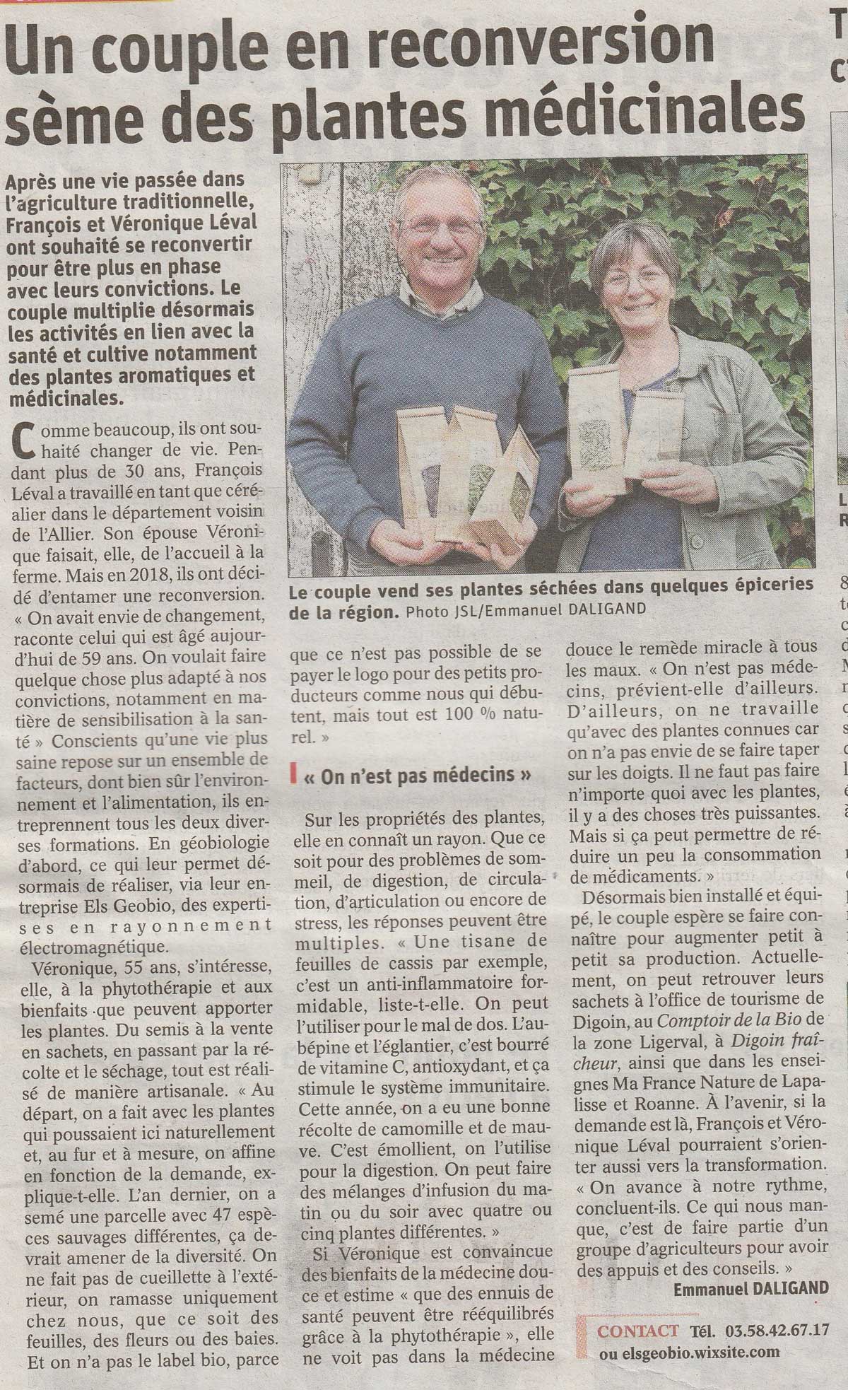 Producteurs de plantes médicinales, nous vous proposons des plantes de qualité pour retrouver calme et bien être au cabinet proche de Digoin, Paray-le-Monial et Moulins. Ceci peut venir en complément de nos expertises géobiologiques, diagnostic rayonnements électromagnétiques et séances en thérapies naturelles complémentaires.
